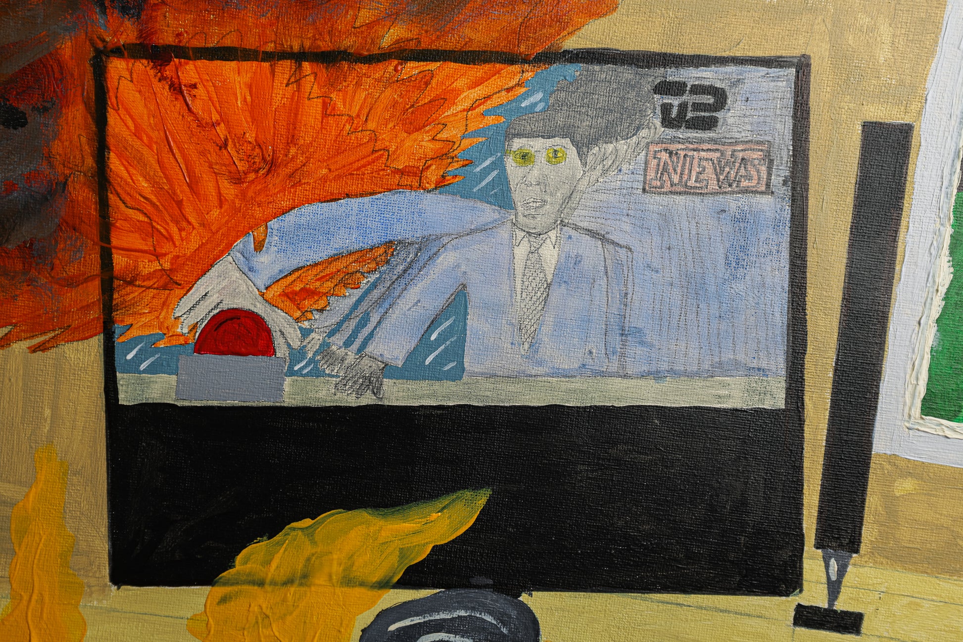 The message of “Breaking News” reflects my own life just as much as it reflects my parents’. Painting pulled me away from the illusion — the screens, the noise, and the constant feeling of trying to be useful while lacking purpose.